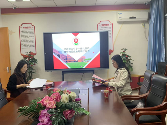 思政课是落实立德树人根本任务的关键课程,是铸魂育人的主渠道和主阵地。座谈会上,李彬书记和天津师范大学滨海附属小学王校长就如何通过加强顶层设计,采取多维路径,教学研究互通、教学内容联通、教学资源融通和教师培养贯通等方式推进大中小学思想政治课一体化建设进行了深入的交流。仪式上,双方签署了“小手拉大手”支部共建协议及“大中小学思政课一体化建设”共建协议书,并特聘李彬书记为思政课教师。