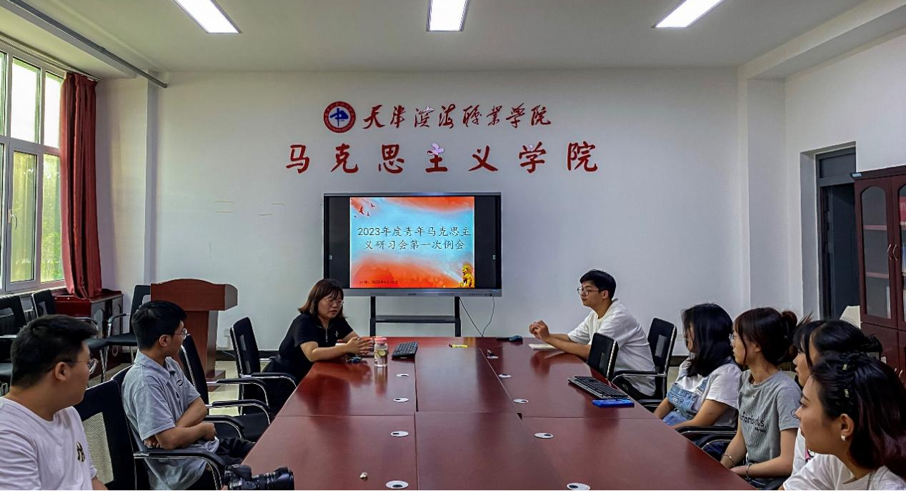 2023年9月21日,天津滨海职业学院青年马克思主义研习社在马克思主义学院会议室举行本学期第一次工作例会,会议由马克思主义学院社团指导教师张赫老师主持,社团各部部长及组长参加。