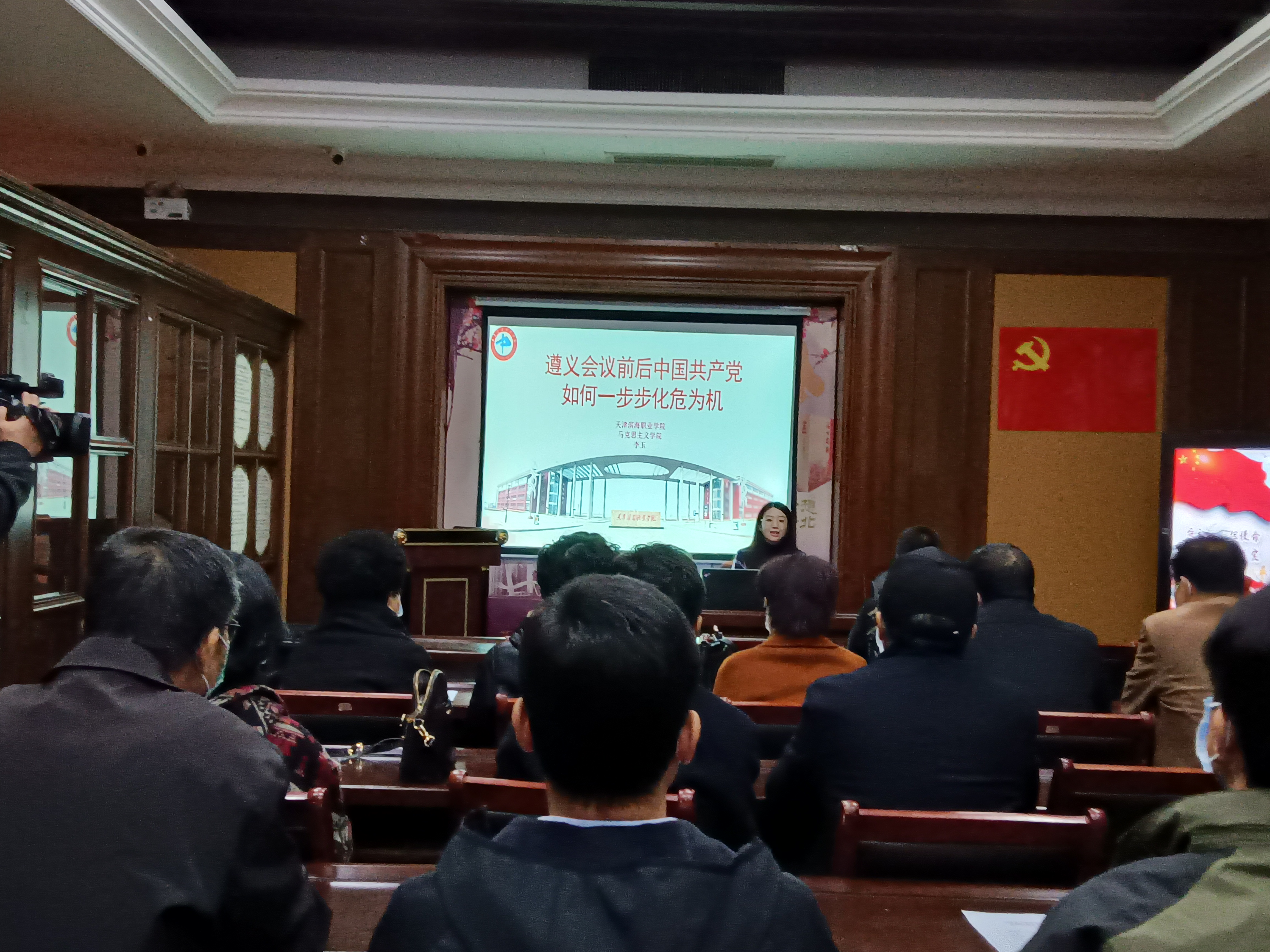 为深入贯彻落实新葡的京集团8814党史学习教育动员大会的安排部署,服务社区居民的先锋模范作用,马克思主义学院党支部以“百场党史宣讲,庆建党百年”主题实践活动第二场于3月18日上午在新北街贻锦台社区开讲。新葡的京集团8814马克思主义学院党支部书记李玉梅与党员李玉老师走进贻锦台社区党群服务中心开展服务基层活动。李玉老师为贻锦台社区32名党员同志带来了题为《遵义会议前后中国共产党如何一步步化危为机》的党史宣讲,献礼中国共产党成立100周年。