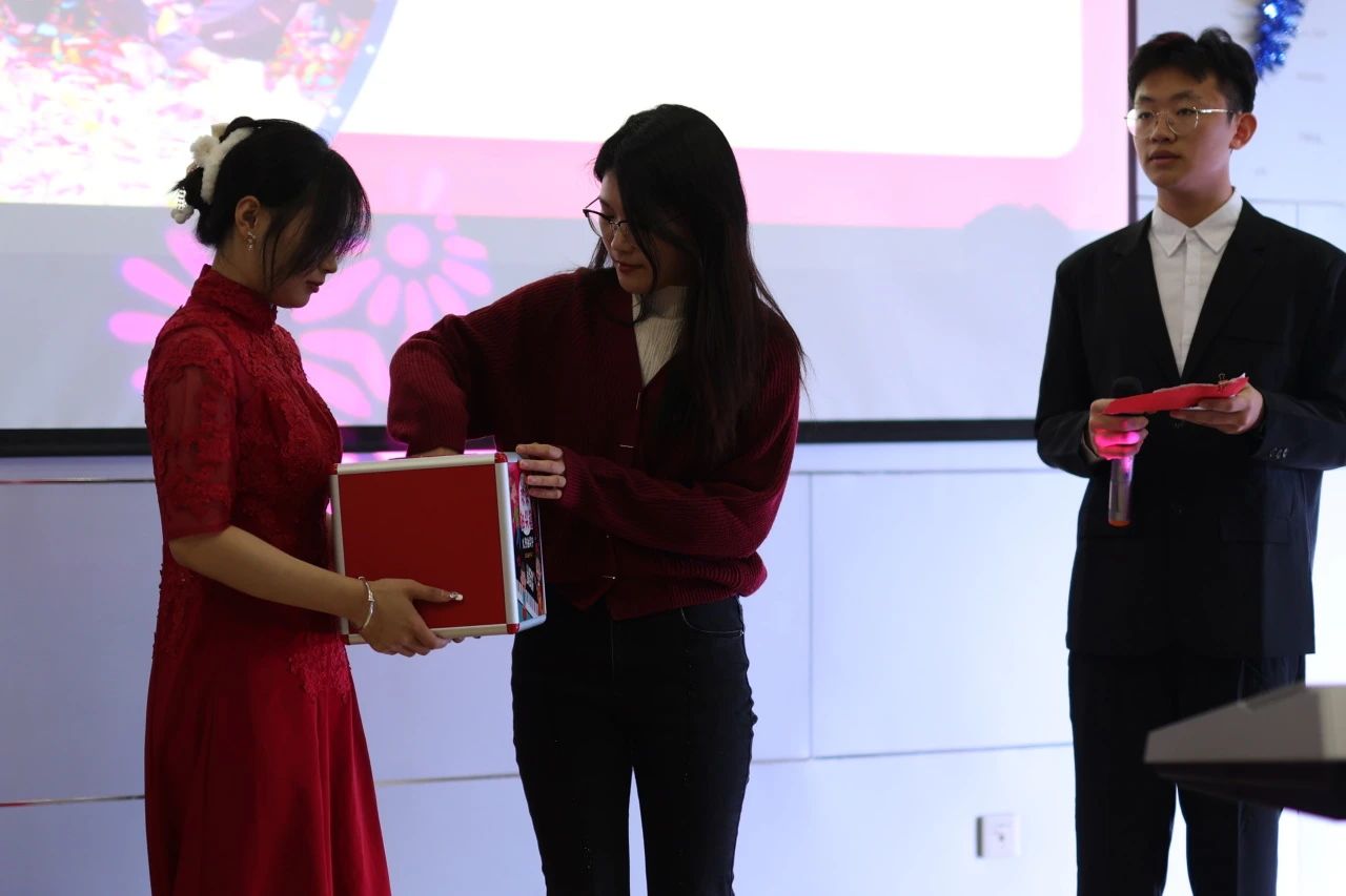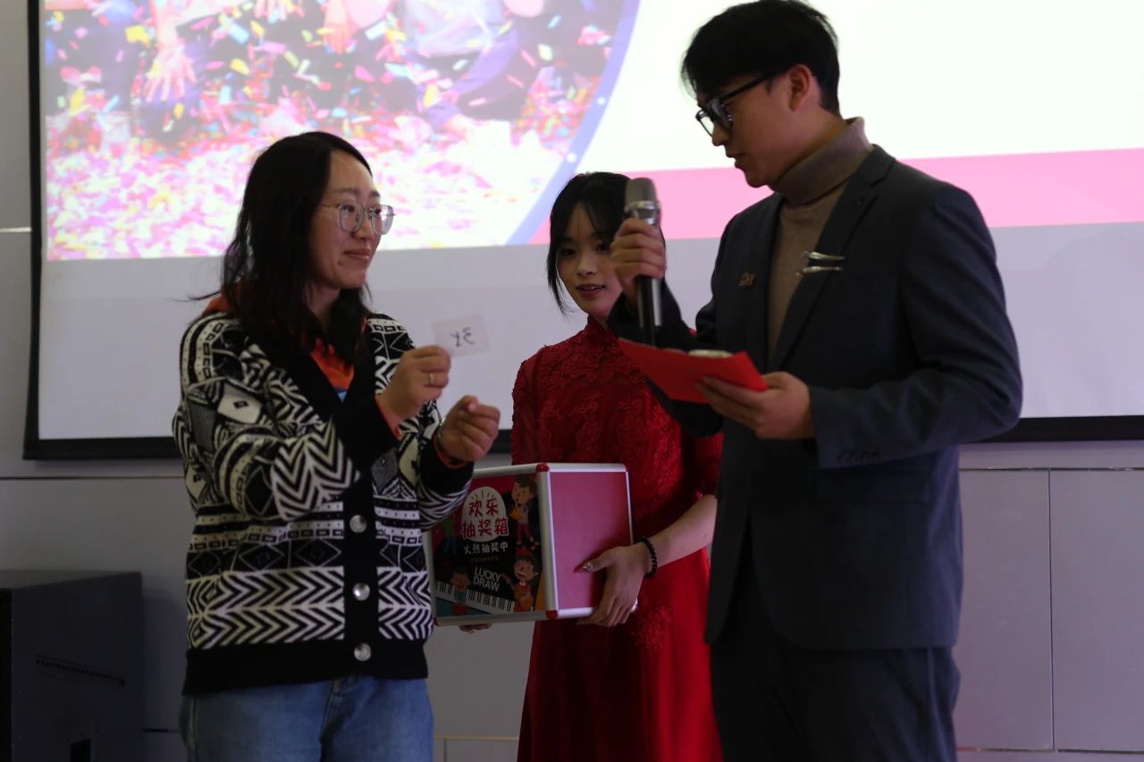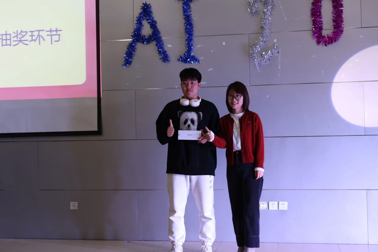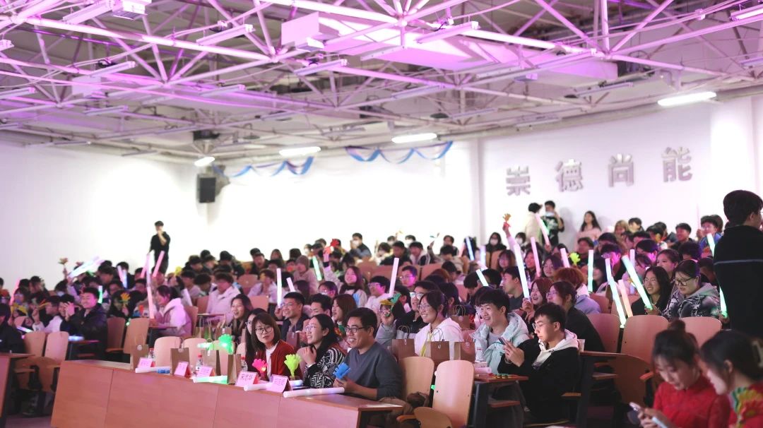 此外,晚会还设置了抽奖活动等,吸引了大量小萌新们积极参与。游戏环节中,学院老师们与同学们互动,让现场气氛走向高潮。