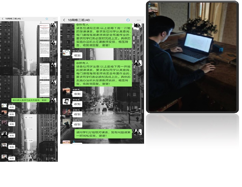 受疫情的影响,全国上下都采取了延期返校措施,我们也不例外,利用网络授课的形式力保不耽误课程的进展。之前我预设了很多困难,如需要计算机操作的实训课程、没有无线网络甚至通讯信号不稳定的边远地区学生等。但是在统计过程中,没有任何一个学生因为外界的困难而放弃上课,都是坚持用自己独特的办法克服困难,没有计算机操作,就将程序写在纸上,或者用手机先保存下来,没有网络,就与邻居沟通借用一下,更甚至是刚刚出院的学生咬牙也要坚持完成听课任务。此次疫情期间我感受到了学生们的配合,前所未有的团结,大家众志成城的去完成一件事情,共同期盼着春暖花开。