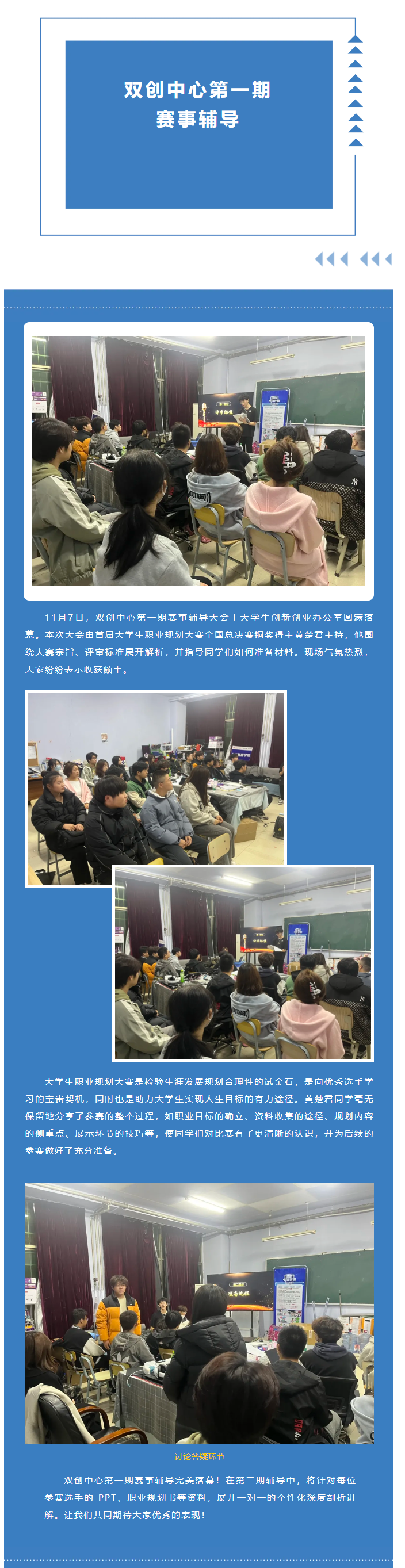 双创中心助力全国大学生职业规划大赛——第一期赛事辅导顺利进行! 来源:本站原创 发布时间:2024-11-11 18:47:06 浏览次数: 次 【字体:小 大】 终审:rgznxysh2 分享到: 【打印正文】