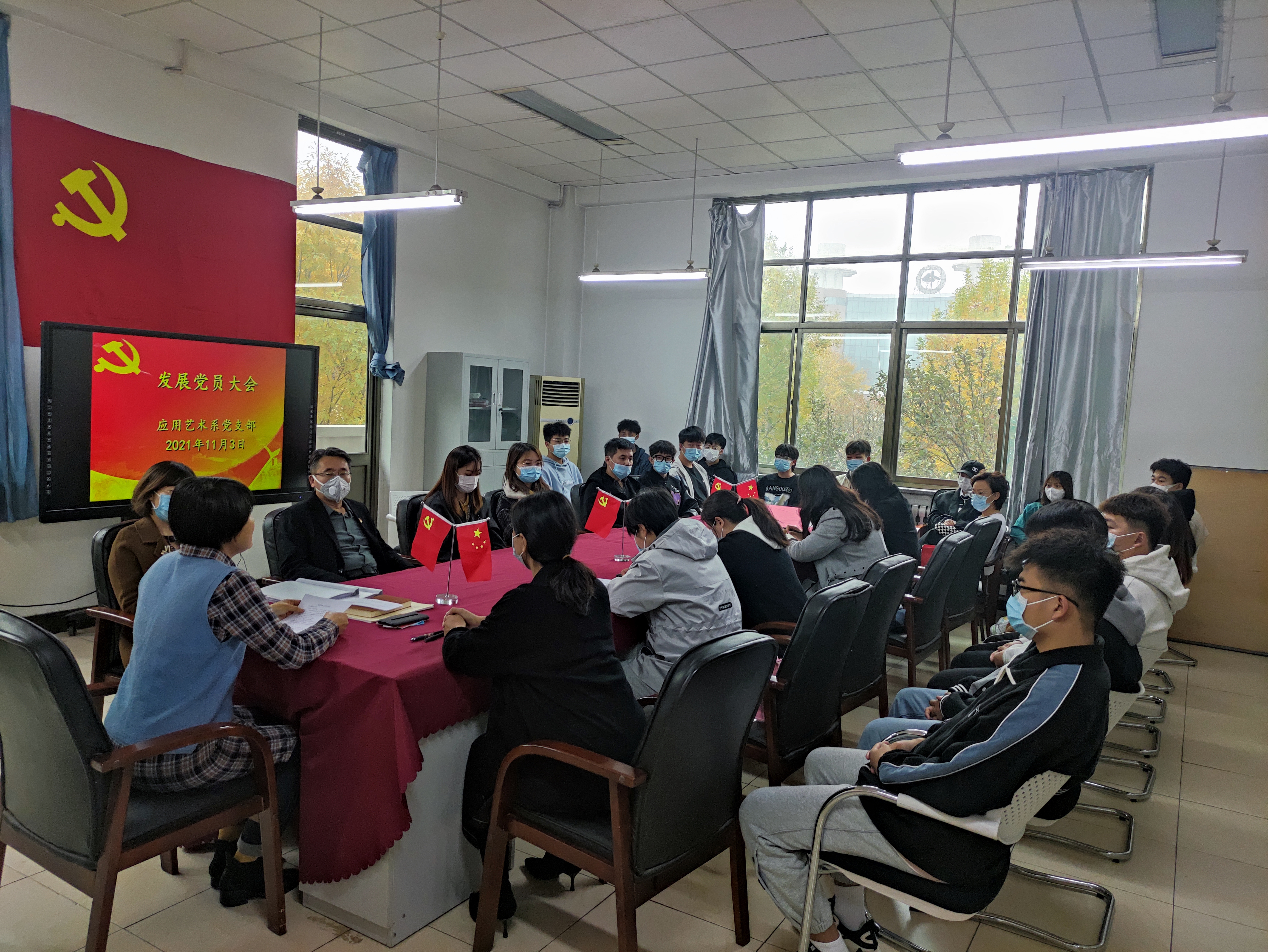 为切实推进学院党建工作发展,加强党的队伍建设,按照《中国共产党发展党员工作细则》要求,应用艺术系党支部于2021年11月3日下午召开接收预备党员发展大会,全体党员及入党积极分子参加了会议。本次会议主要议题是讨论是否将李茹芸、杨弘知两位发展对象吸收为中共预备党员,会议由支部书记李红燕主持。