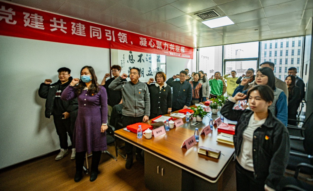 校企全体支部党员面向鲜红的党旗庄严举起右臂宣誓。铿锵磅礴的誓词,强烈的震撼着在场的每一个人,一字一句,神圣而豪迈,激励着大家不忘初心,以实际行动践行入党誓词。