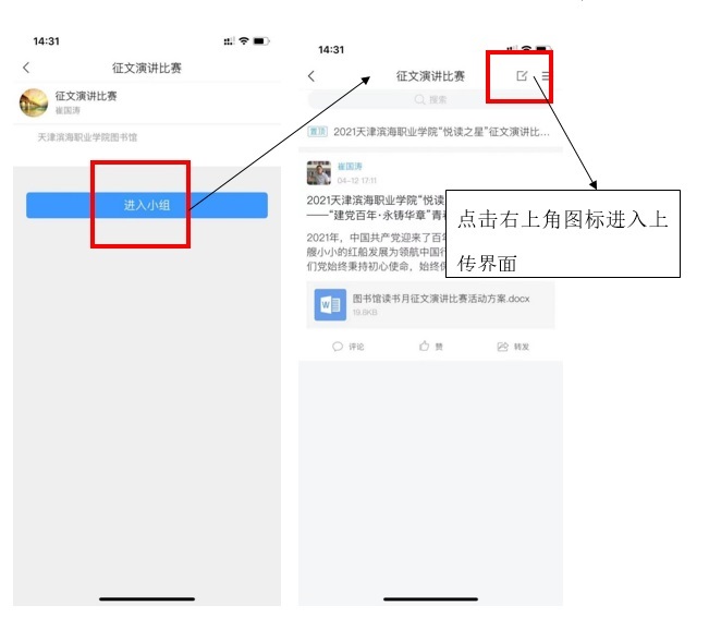 2.点击“进入小组”上传参赛演讲视频。