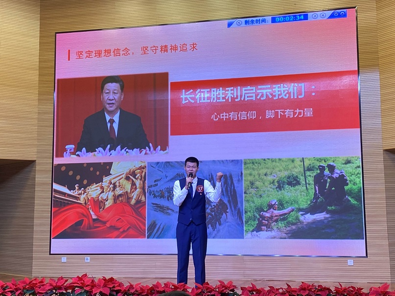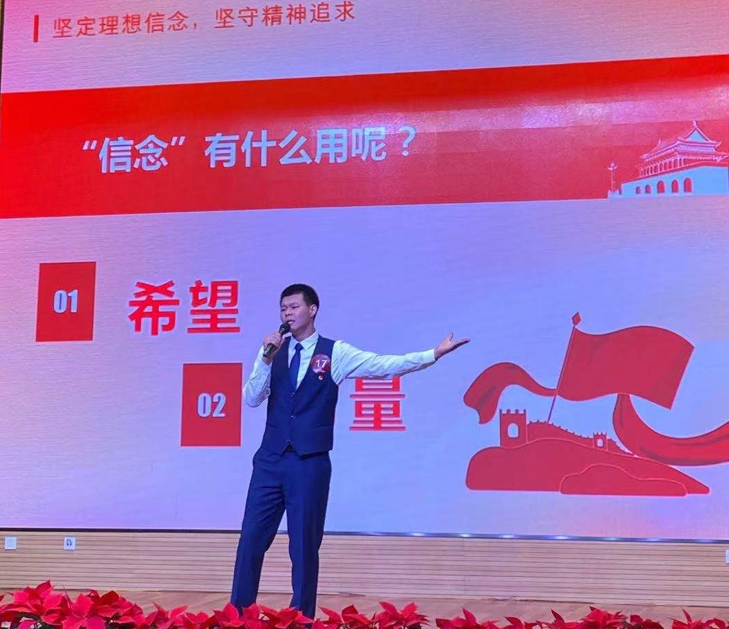 在总决赛中王文博同学用真诚的语言讲述了长征途中党和红军依靠坚定的理想信念和坚强的革命意志,一次次绝境重生,讴歌共产党员“革命理想高于天”的精神力量。同时结合新葡的京集团8814机电工程系优秀毕业生张盼的事迹,展现了新葡的京集团8814青年学子把个人理想融入国家和民族事业中的爱国情怀,充分抒发了青年学子对党和人民的热爱,展现了青年人的青春朝气和蓬勃生机。最终荣获大赛二等奖的佳绩。