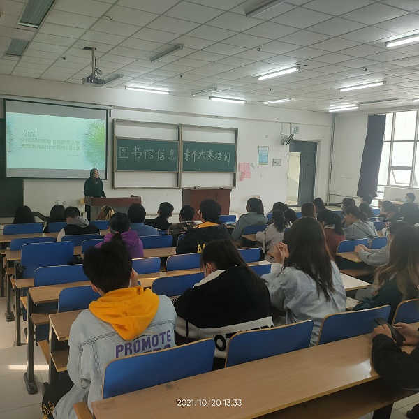 2021年10月20日下午,图书馆在主教学楼阶三教室开展信息素养知识培训。这是为配合2021年全国高职高专信息素养大赛而开设的讲座,是为了让同学们熟悉信息素养大赛的要求、比赛形式,比赛软件环境,学习更多的信息素养知识,学会更多的信息素养技能而专门进行的培训讲座。