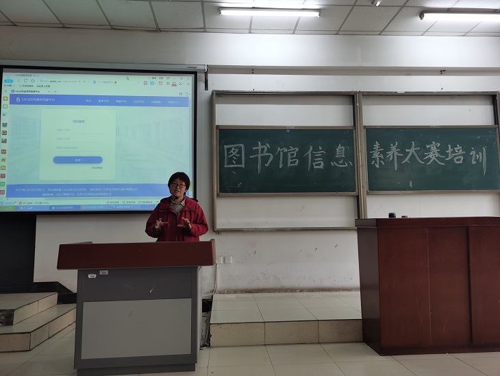 在备赛过程中为了取得更加优秀的成绩和更好的效果,图书馆老师们在主教阶梯教室集中为参赛学生举办两场信息素养备赛辅导培训,讲解关于信息素养、信息检索、信息利用分析,以及数据库和搜索引擎的检索及利用等竞赛相关基础知识,获得了同学们较好的反馈。