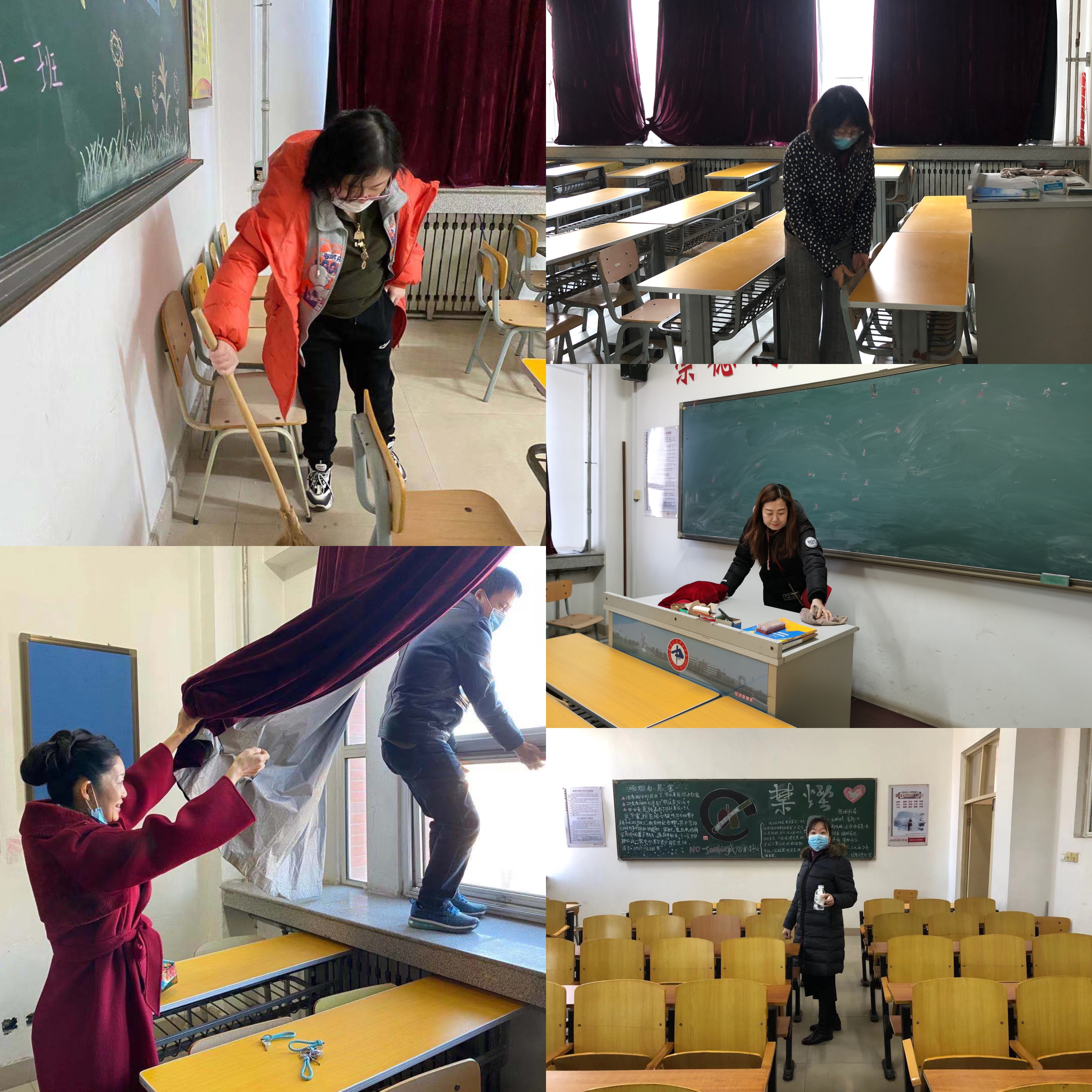 勇担当、践行动,党史课结束后,经济管理系组织全体教师认真开展了卫生大清扫活动,组织老师们对教学楼和实训场所进行了集中清扫。清扫过程中老师们积极发扬奉献精神,不怕脏,不怕累,分工协作,有序开展了对教学楼和实训场所彻底清扫工作,不留死角。
