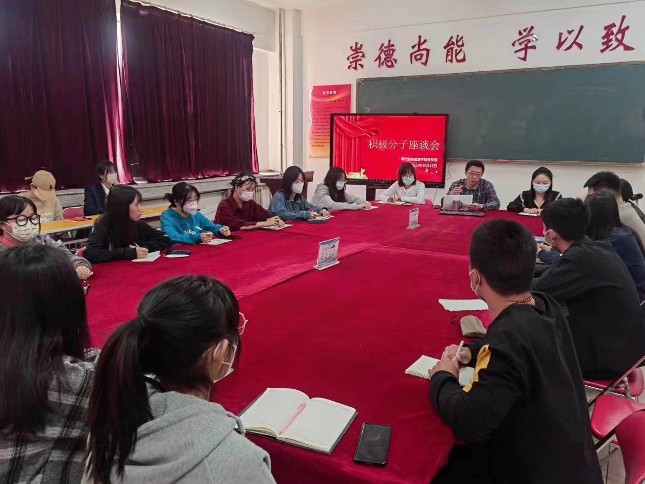 2022年10月12日,现代服务学院召开了2021级入党积极分子座谈会。会议由党支部书记徐公仁主持,副院长王佳、副书记闫亚萍参加了座谈会。