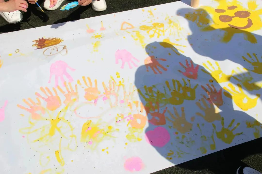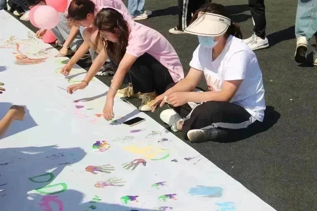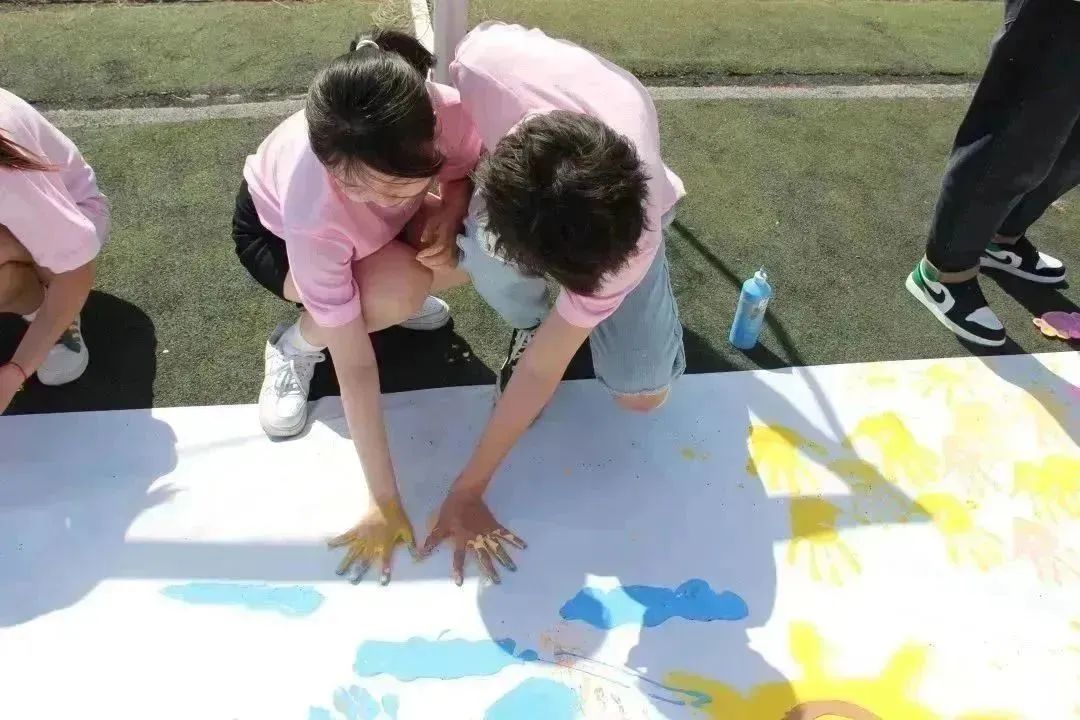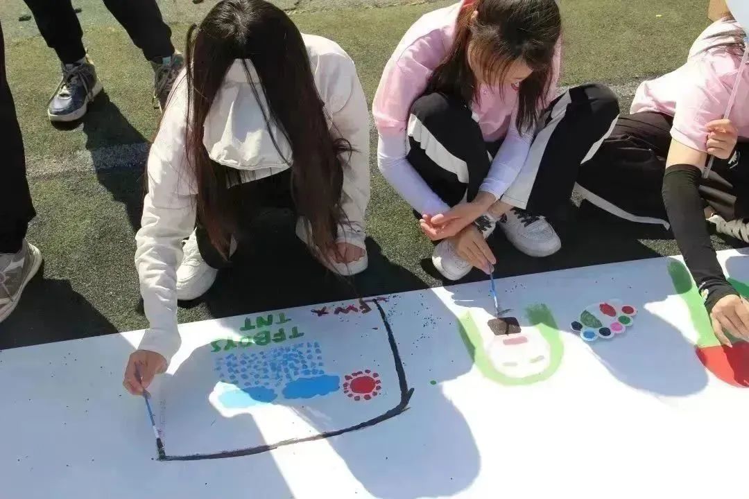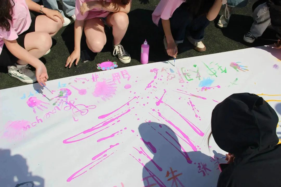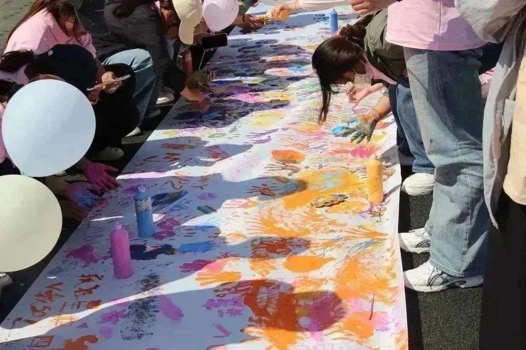 同学们在巨幅白布上发挥想象,探索自我,用画笔和颜料创造出独特的作品。