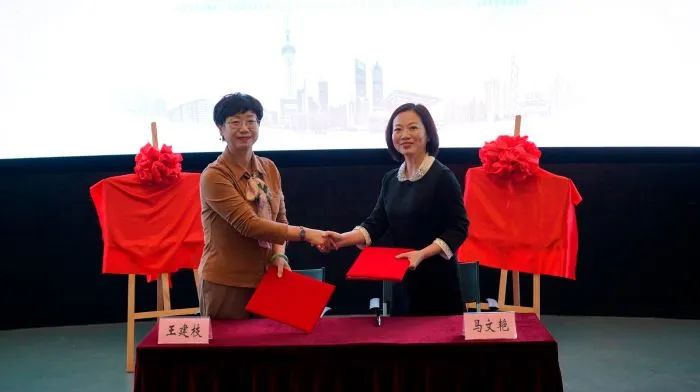 在全场参会人员的见证下,天津滨海职业学院党委书记王建枝和滨海新区图书馆党总支书记、馆长马文艳共同签署了文化合作协议。双方共同揭牌“天津滨海职业学院大学生社会实践基地”“天津滨海职业学院学前教育产教融合实践中心”。