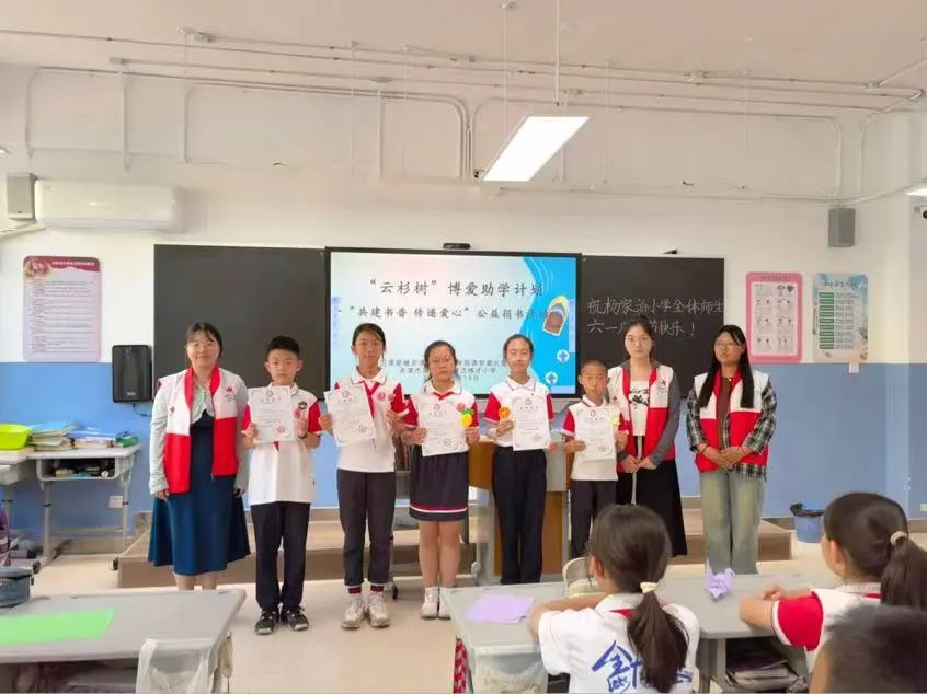 活动最后志愿者为捐书班级颁发证书,并为捐书同学赠送小礼品以表达谢意。