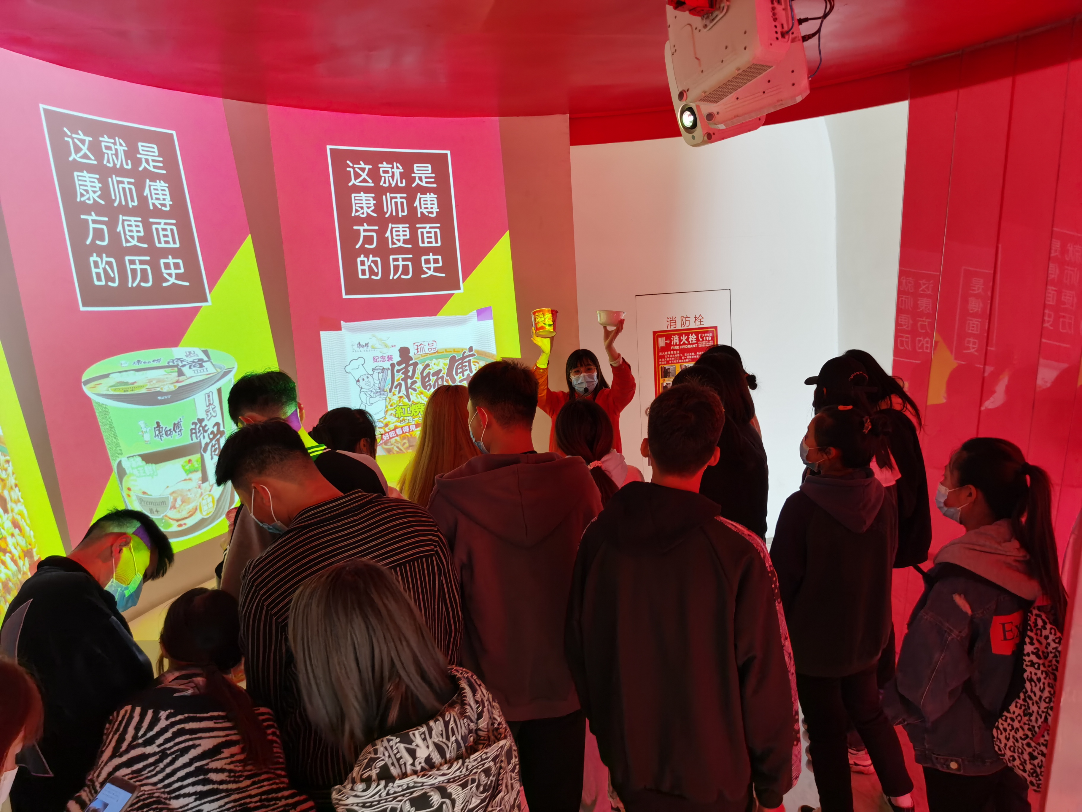 在讲解员的带领下,同学们还观看了动漫短片并且参与了游戏互动,学习到了康师傅的发展历程和品牌理念。
