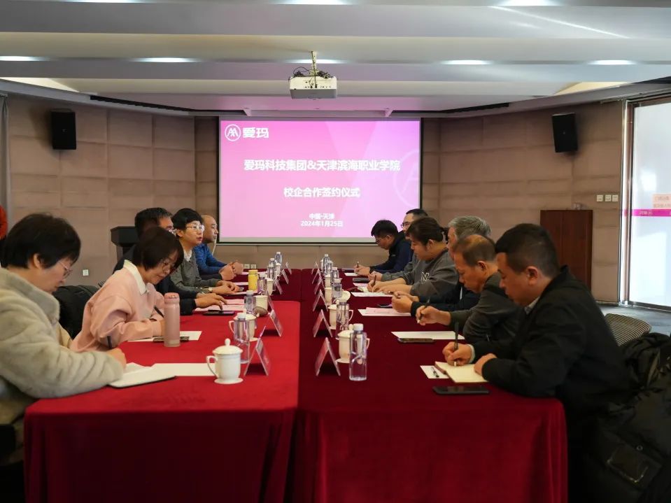 2024年1月25日,天津滨海职业学院与爱玛科技集团股份有限公司校企合作签约仪式活动在爱玛科技集团中厅会议室成功举行。滨海新区教体局副局长吴英元、静海区人社局副局长王贺起、天津滨海职业学院党委书记王建枝出席会议,静海区人社局能力建设科科长刘振、智能制造学院院长陈天祥、爱玛科技集团首席人才官李娜、常务副总经理张行、人力管理部部长李延峰及双方有关同志参加会议。会议由爱玛科技集团股份有限公司人才运营中心人力资源经理杨帅雨主持。