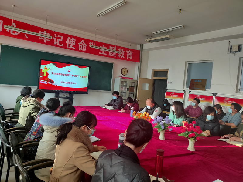 在第一阶段文件的学习阶段,由机电工程系党支部系副书记、副主任陈天祥同志根据学院党委相关要求,结合系部实际情况,带领大家分别学习了《天津市滨海新区区委三届十二次全会精神》、《天津滨海职业学院“十四五”发展规划》、《滨海新区“鼓足闯劲谋改革 提升胆气勇创新”大讨论专题材料》和《中共中央关于制定国民经济和社会发展第十四个五年规划和二O三五年远景目标的建议》。陈天祥同志结合所学文件中确定的规划和远景,结合新校区建设,引导老师们结合各专业人才培养、师资队伍现状,树立远大的目标,为下一阶段的讨论抛砖引玉。