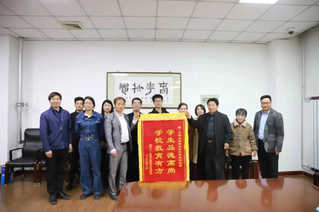 小小锦旗,既是鼓励,更是鞭策。刘迎春同学及其家人在面对倒下的老人没有丝毫犹豫“扶不扶”,用实际行动传递了社会正能量和新时代“雷锋精神”。学校将坚持以立德树人为根本,积极开展学习身边先进典型活动,引导滨职学子做好社会文明进步的实践者、美丽中国的建设者,将一颗爱心不断传递下去。
